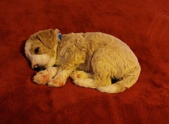 Iris is a female Goldendoodle. Carefully selected as a great representative of her breed, Jan decided to make her part of their program. Jan has passed Good Dog’s screening process, which involved a review of their breeding practices, environment, and the mental and physical health of their dogs.
