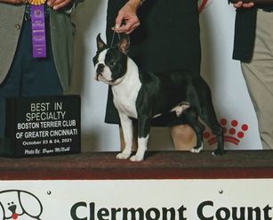 I'm Kathryn G., the breeder behind Katbird Bostons located in Kentucky. My name is Kathryn Graves. I have been breeding and competing with Boston Terriers since 1988. My goal has always been to produce excellent dogs that conform to type and have the temperament typical of the Boston Terrier. My program has produced numerous show ring and performance event winners. But I am equally proud of all the Bostons that have been placed in loving homes as companions.