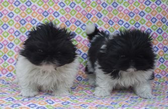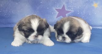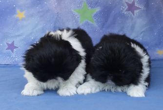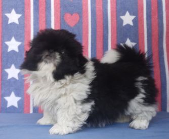 OUR BEAUTIFUL KALI TU IS AN OUTSTANDING SILVER AND WHITE PARTI COLOR WITH FLOOR LENGTH COAT AND FRINGE. HE HAS A BEAUTIFUL PEDIGREE AND SWEET PERSONALITY. HE HAS MAJOR POINTS TOWARDS HIS AKC CHAMPIONSHLIP.