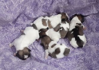 CH LACY IS A BEAUTIFUL SILVER AND WHITE PARTI COLOR GIRL. HER PUPPIES ARE EXQUISITE AND OUTSTANING QUALITY.