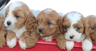 Our Pomsky puppies are mini size. Cavapoo puppies are miniature size. Bernedoodle puppies are medium size. Sizes will vary depending on the parent dogs.