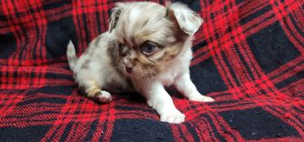 Kasper is a HUGE love. He has a calm and lazy temperament. He is an AKC Lilac Merle with bloodlines tying to Taiwan. He has true characteristics of an apple head.