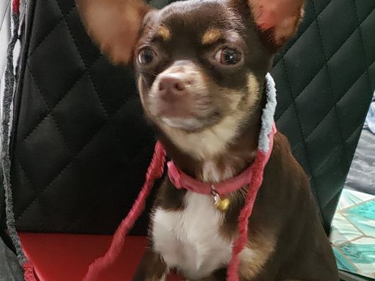 Chico is a male Chihuahua. Carefully selected as a great representative of his breed, Katie decided to make him part of their program. Katie has passed Good Dog’s screening process, which involved a review of their breeding practices, environment, and the mental and physical health of their dogs.