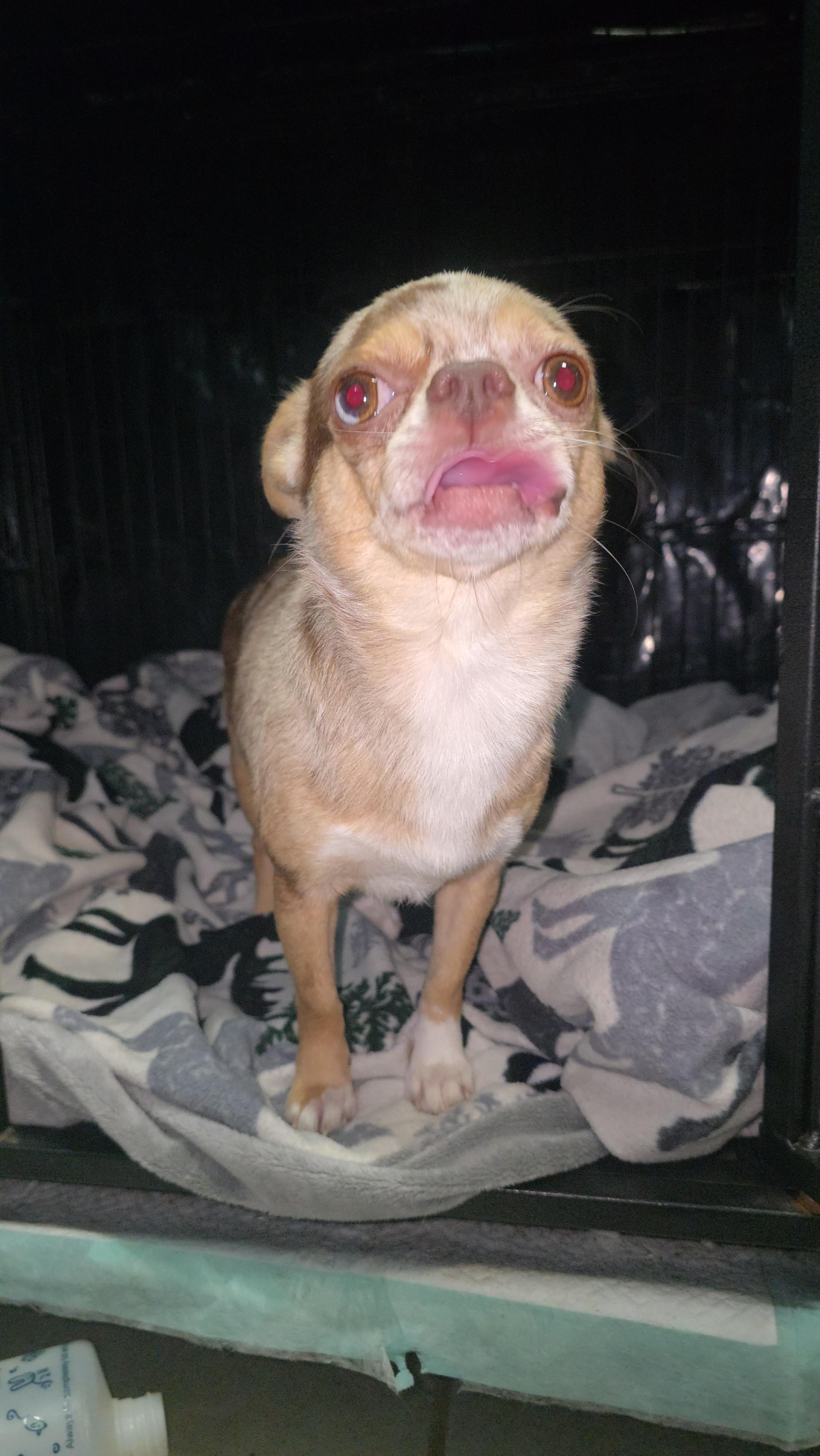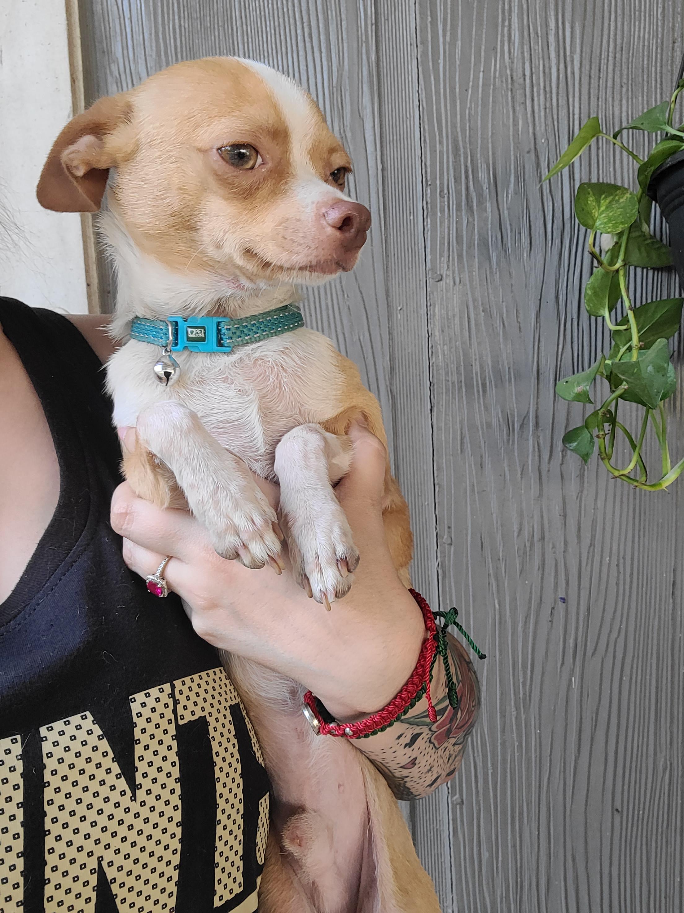 Chulo is a male Chihuahua. Carefully selected as a great representative of his breed, Katie decided to make him part of their program. Katie has passed Good Dog’s screening process, which involved a review of their breeding practices, environment, and the mental and physical health of their dogs.