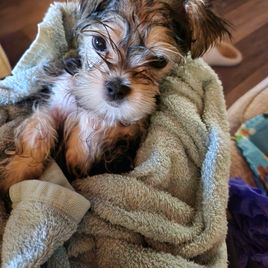 We had a great experience with Katie from Katie's Yorkies. She replied to every question we had during the process. She is a warm and kindhearted soul who deeply loves her pets. She let us come meet Biscotti before we picked him up. We just fell in love with him. We brought him to our vet and he was in perfect condition. Our vet said she would purchase a pet from Katie in a minute. We loved our experience with Katie and Good Dog. Our handsome boy is everything she said he would be.