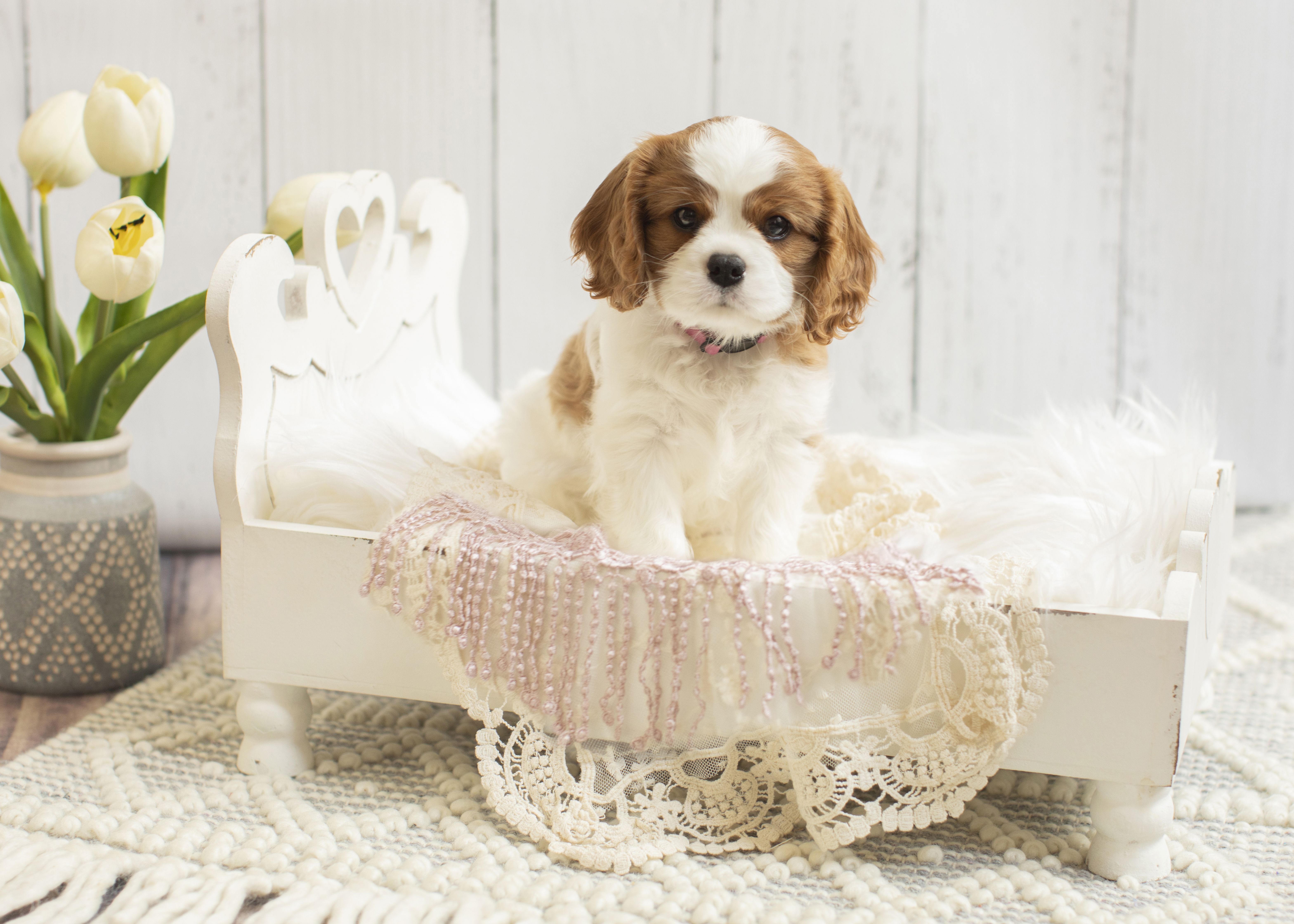 Our puppies include blenheim, ruby, black and tan, and tri-color. Colors will vary depending on the parent dogs.