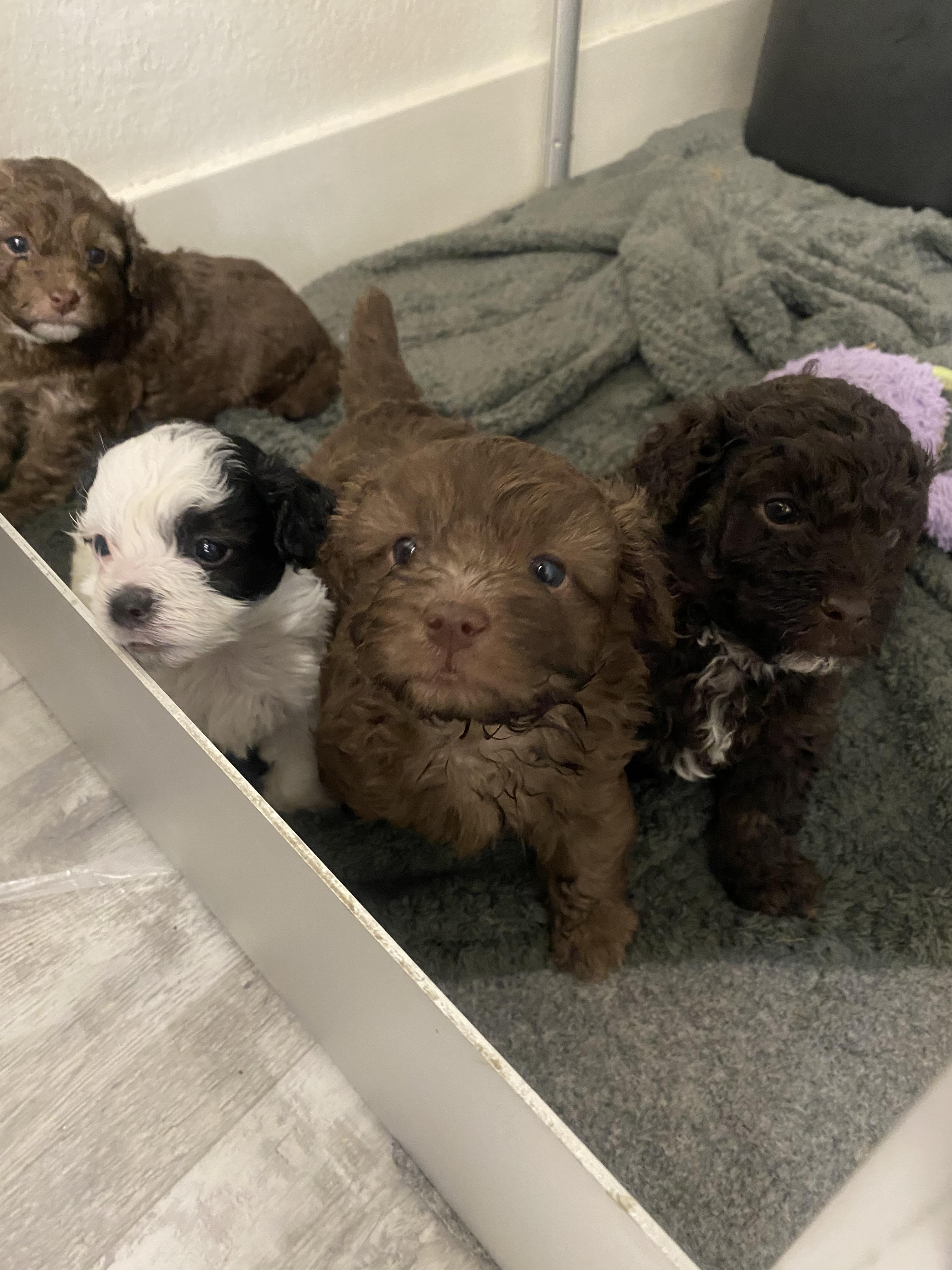 Our puppies include chocolate, black and white, and brown. Colors will vary depending on the parent dogs.