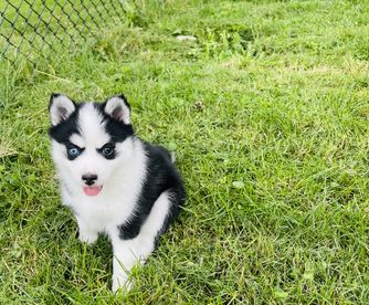 I'm Kayla H., the breeder behind Kayla's Pomskies located in Iowa. We’re so excited to be able to help families experience the longtime loyalty of welcoming a new puppy into their lives! The sweet, loyal, and playful disposition of our dogs inspired us to begin responsibly breeding to expand the breed and share them with others.