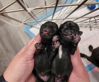 Our puppies include black, fawn, and brindle. Colors will vary depending on the parent dogs.