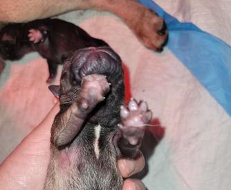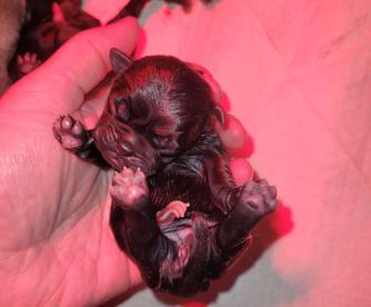 Ruthie is a sweet, cuddly girl. She occasionally gets the zoomies and is quite fast! She loves treats, tennis balls, playing outside, sitting in the hammock, playing in the tunnels, and occasionally sliding down the slide. Ruth is a very attentive mama. DNA tested and in perfect health.