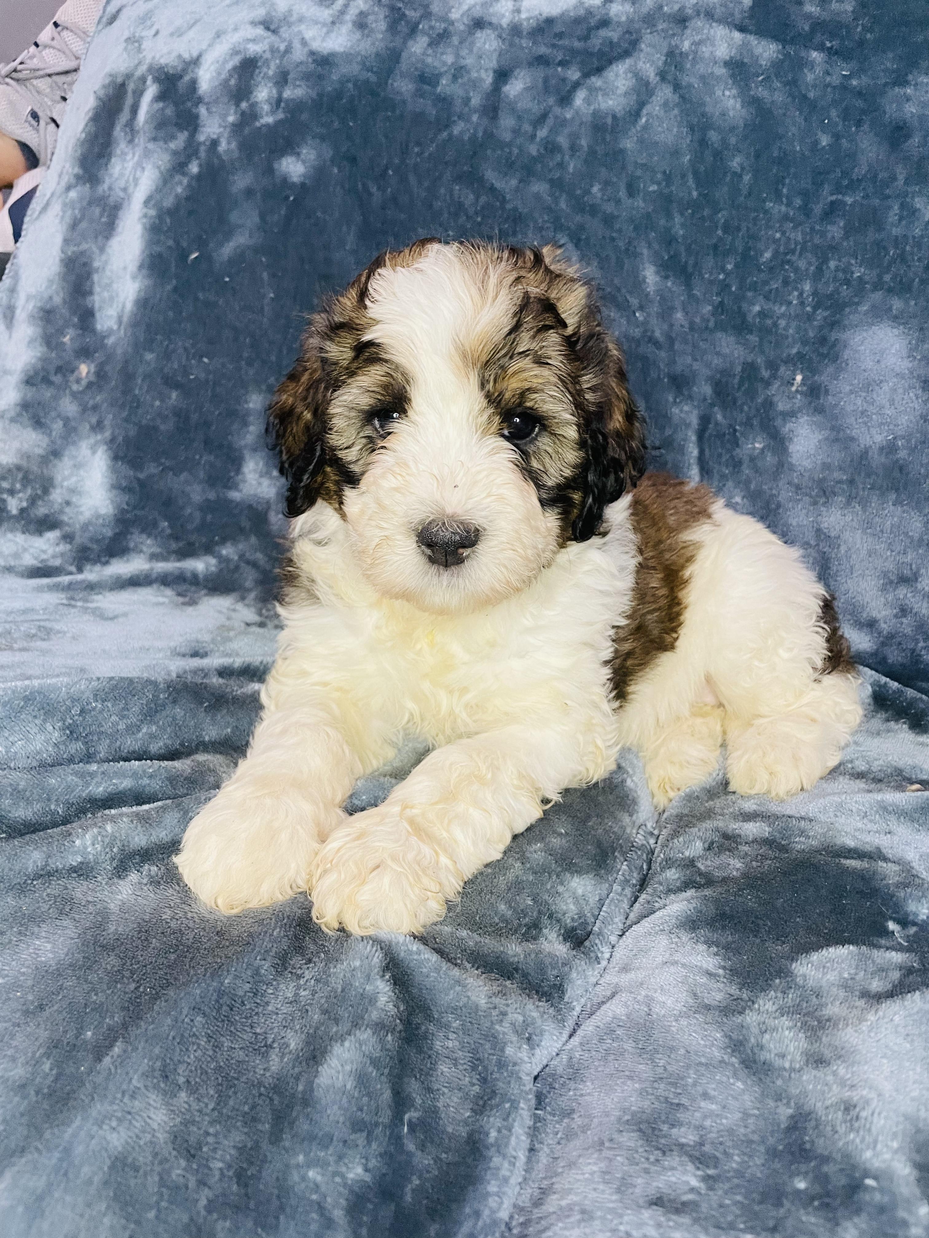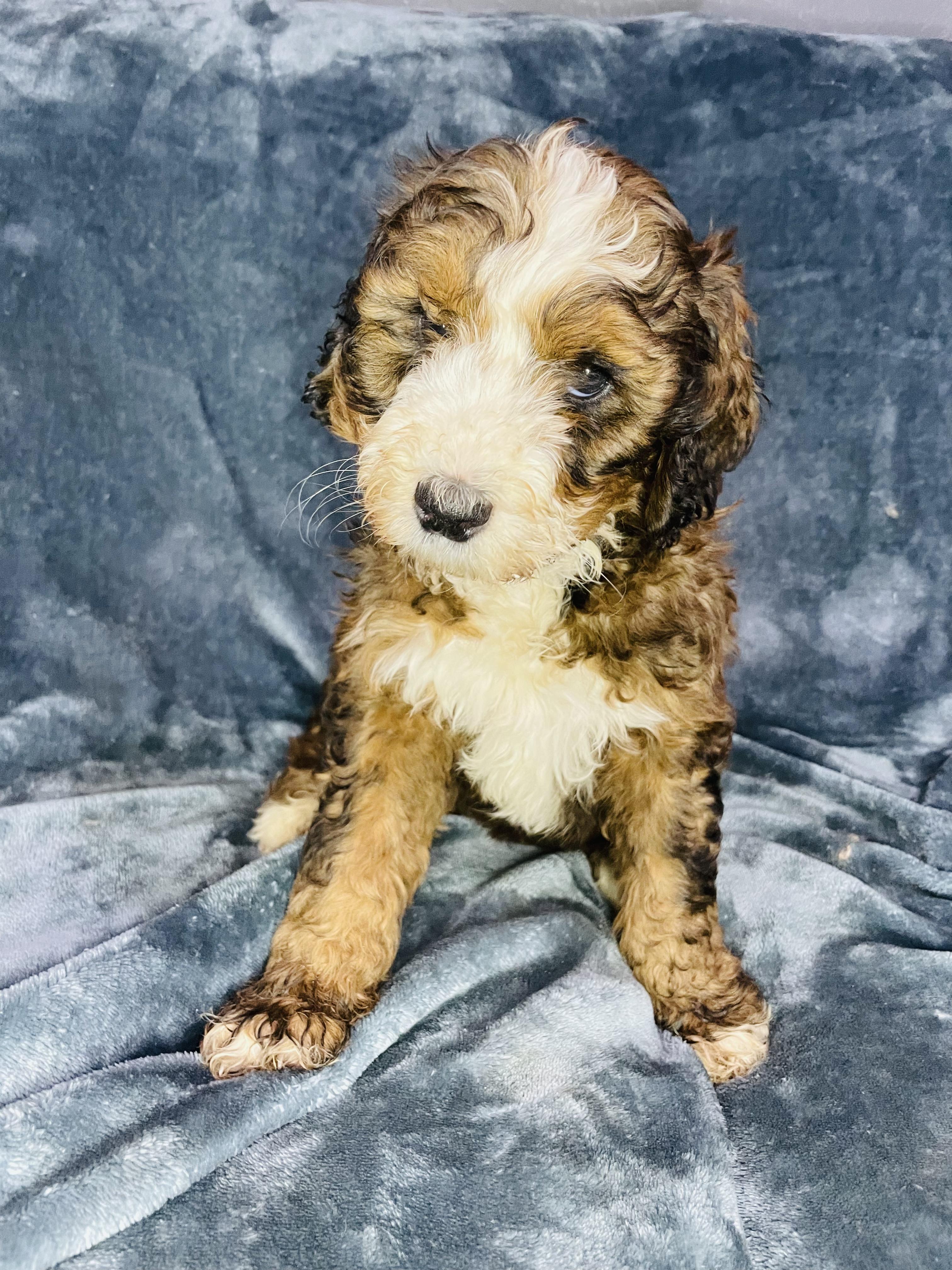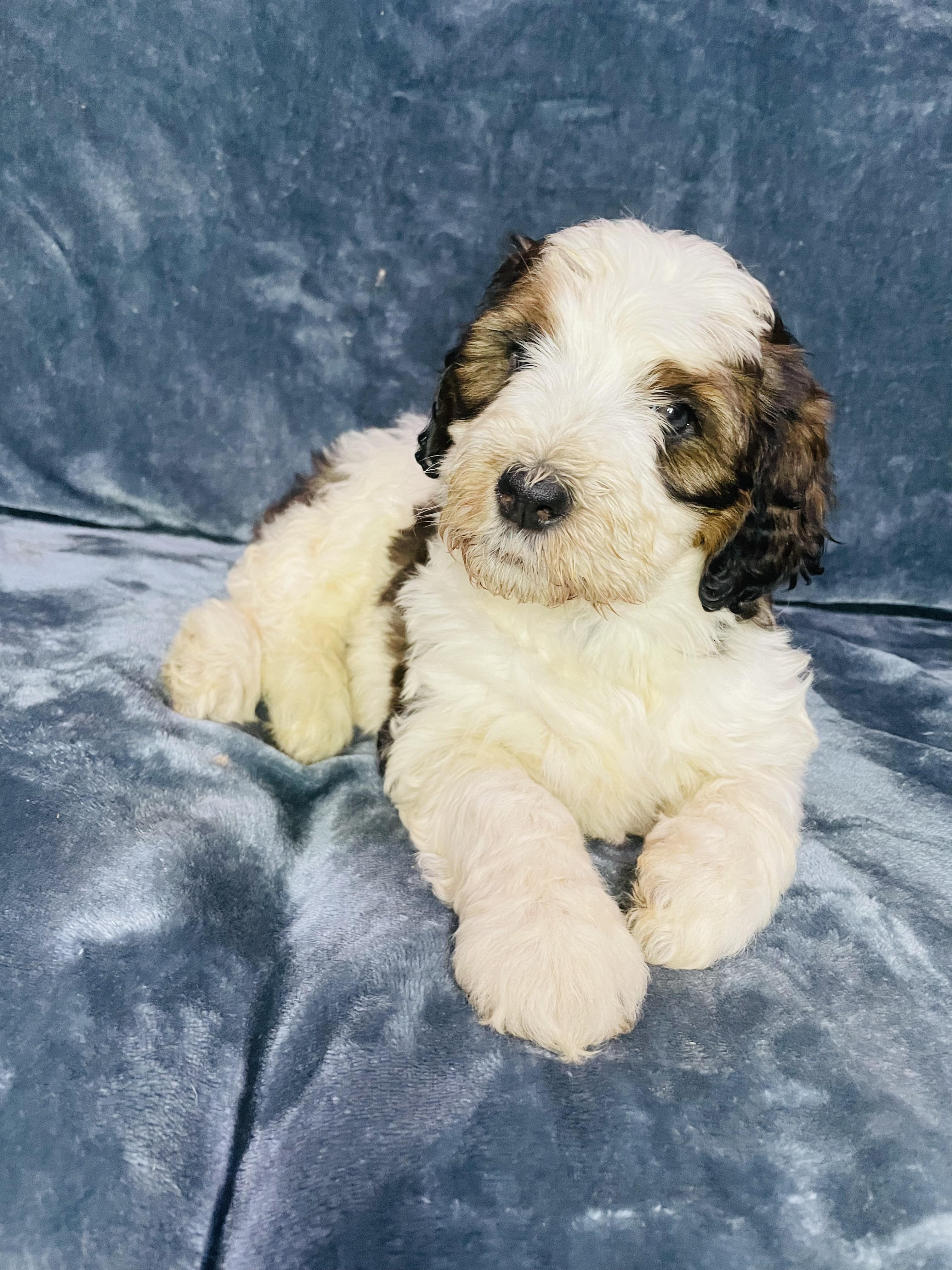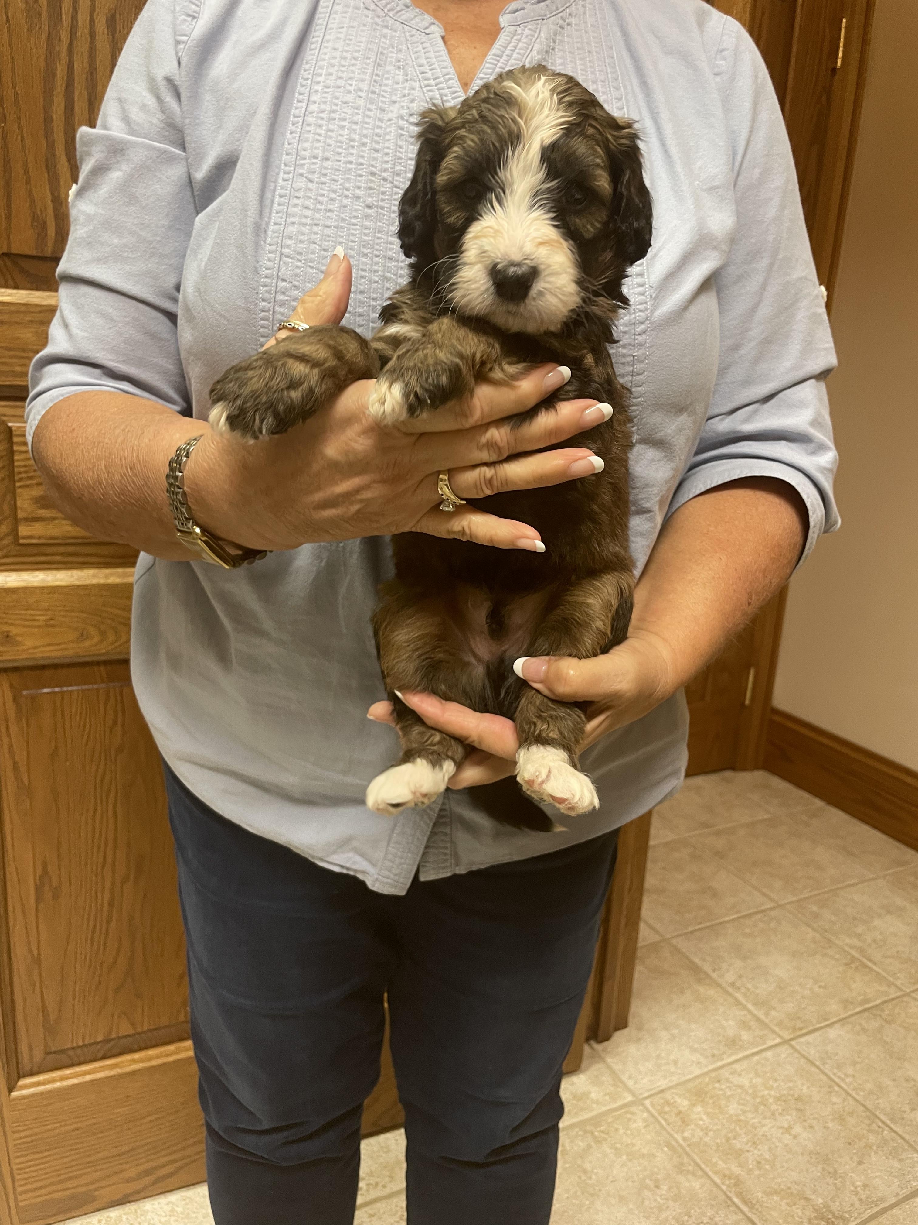 Our Goldendoodle puppies include apricot, red, and parti. Bernedoodle puppies include sable and black and white. Colors will vary depending on the parent dogs.