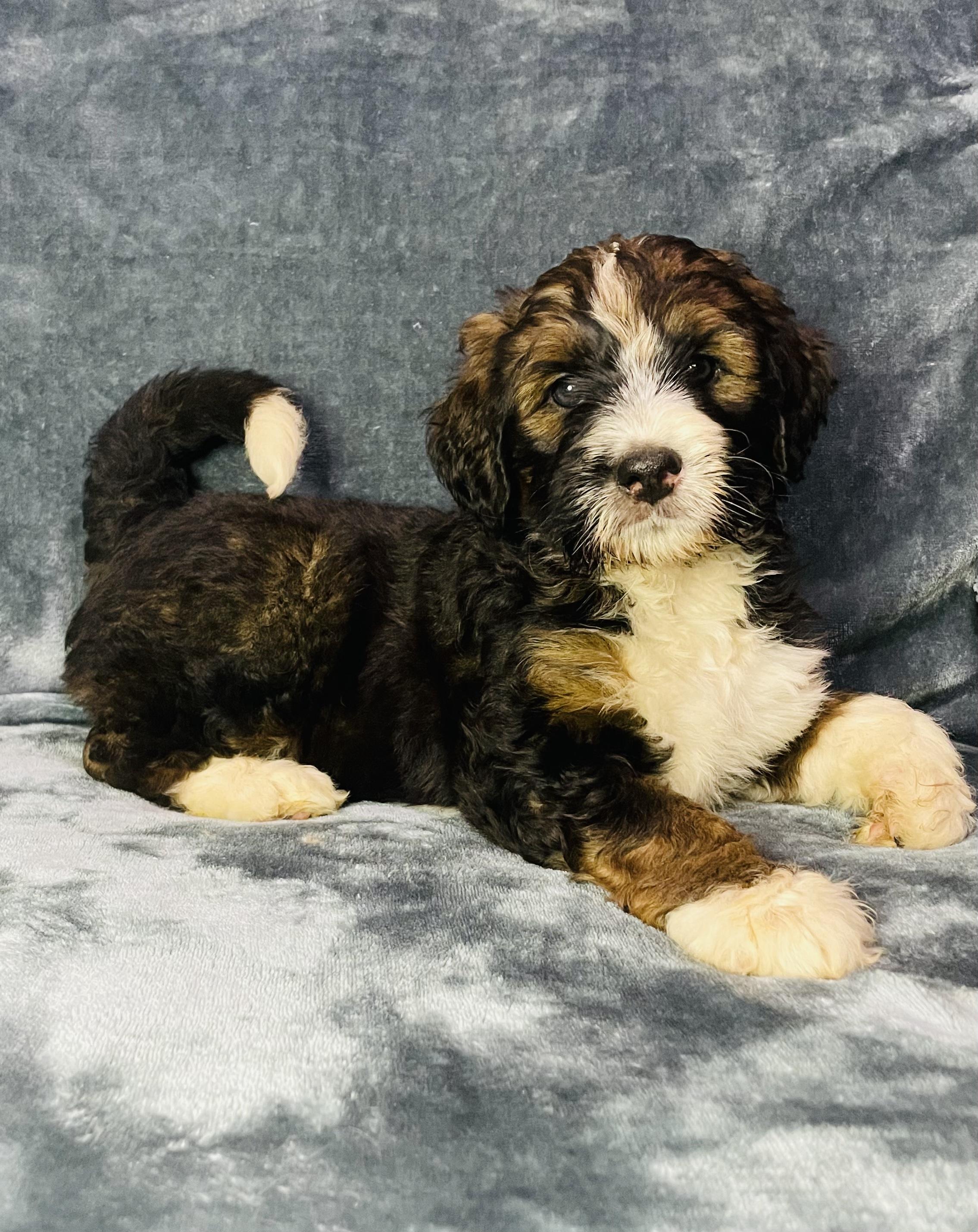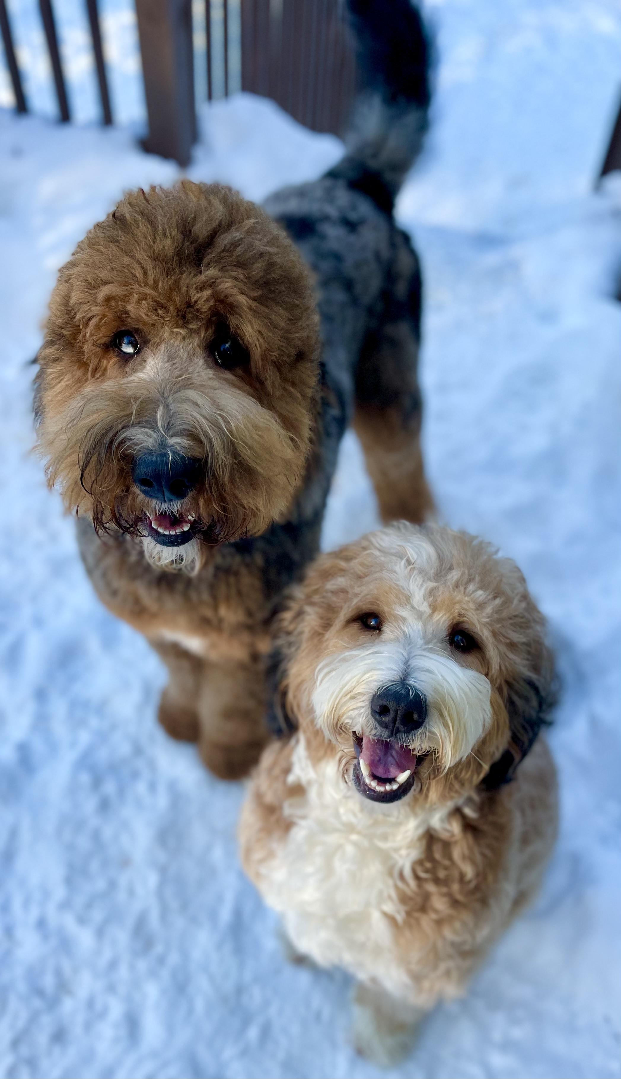 Our Goldendoodle puppies include miniature, medium, and standard sizes. Bernedoodle puppies are standard size. Sizes will vary depending on the parent dogs.