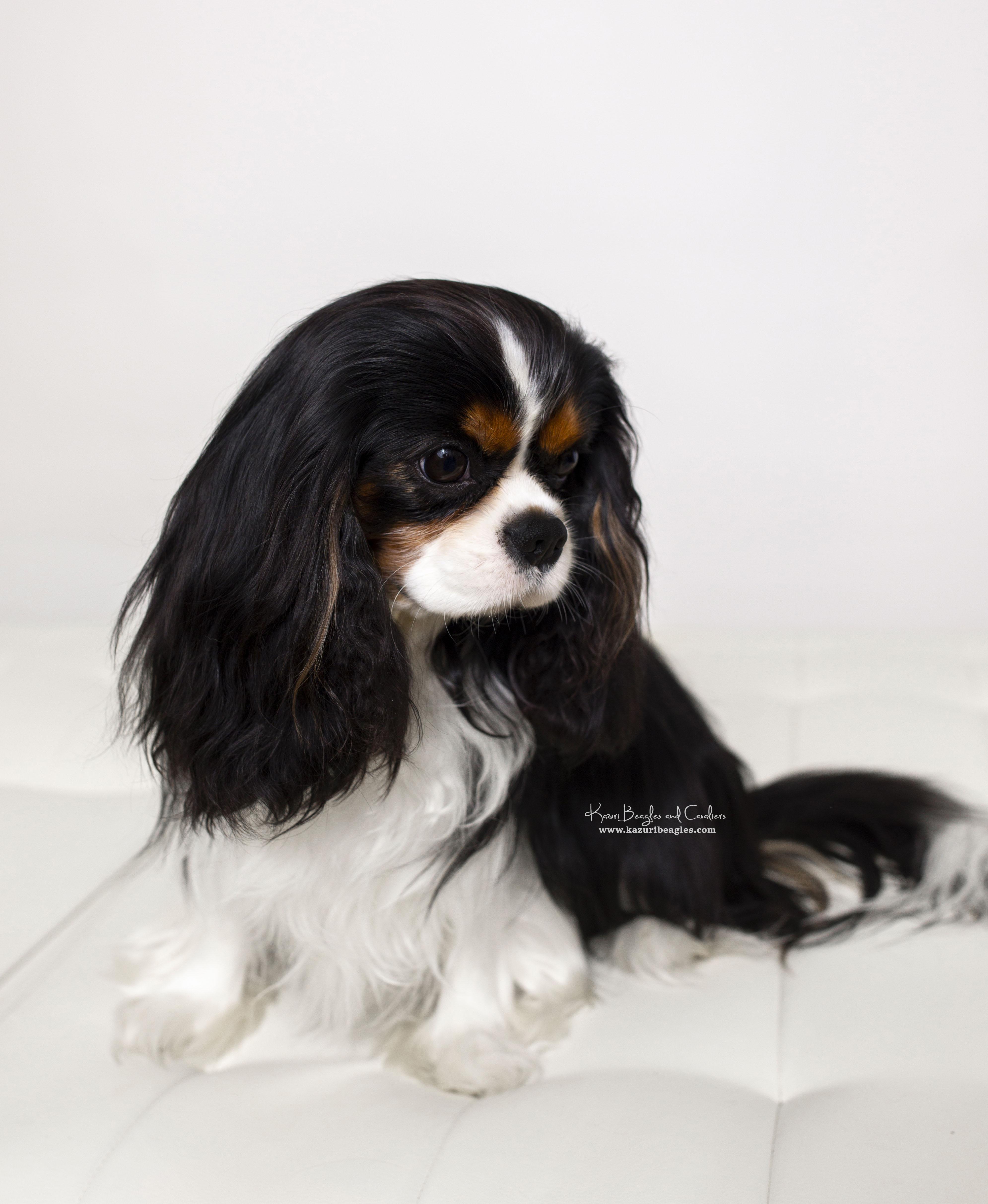Our Beagle puppies are black tan and white. Cavalier King Charles Spaniel puppies include blenheim, ruby, tri-color, and black and tan. Colors will vary depending on the parent dogs.
