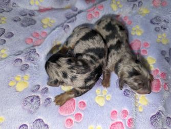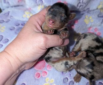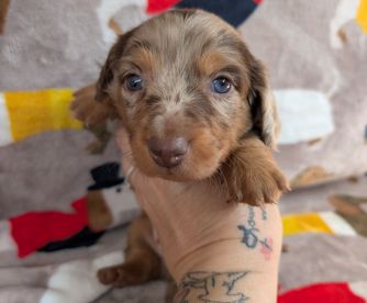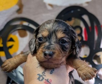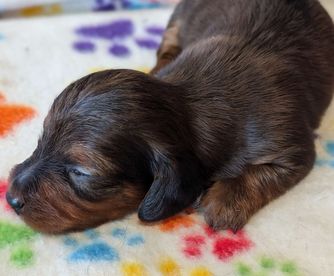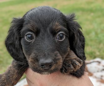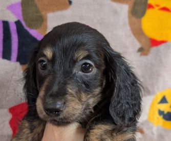 We breed for quality and health, not color, although we do have several different colors we strive for breed standard first. We want to produce puppies who look like Dachshunds!!