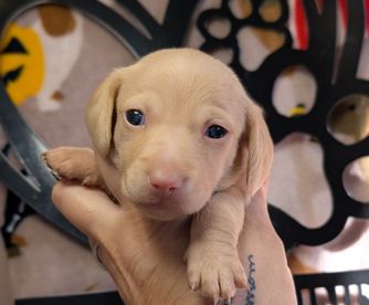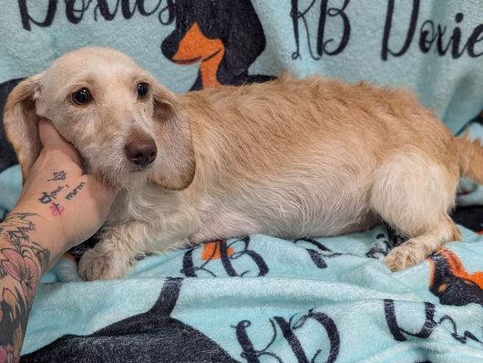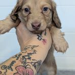 Sonora is a cream wirehair miniature dachshund. She is one I bred myself , her mother is sassy and father is Weston. She is a super sweet and loving cuddly girl!