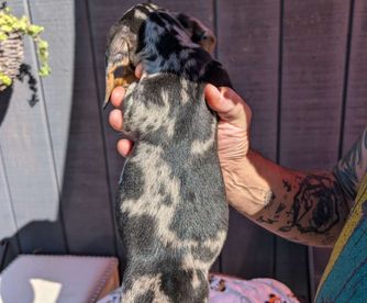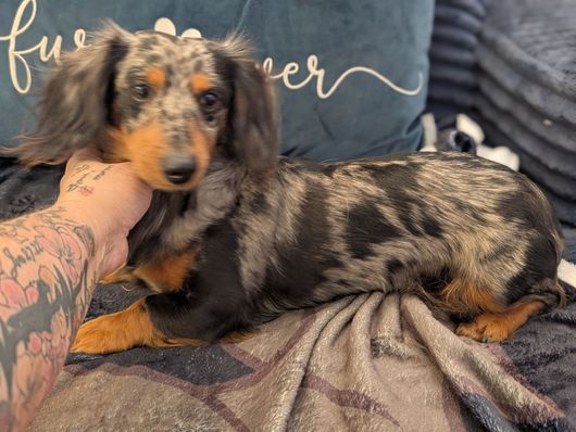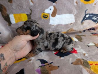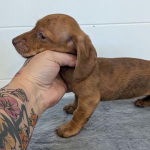We just picked up our boy today and Kimberly was so amazing throughout the experience! My sister got a dachshund puppy through this site from a different breeder a month before we did, and her experience led us to KB. We arrived, got greeted immediately, and were taken to see our puppy right away with a gift bag, paperwork, and answers-to-questions waiting. They asked if there was anything they could do or any questions they could answer. The entire process, Kimberly responded within 20 minutes on the GoodDog messaging system when I updated when we could pick up our pup or asked for pictures. Overall, she was very responsive and knowledgeable about these pups and gave all of the info you might receive from a vet willingly. Our boy is thriving, and I would recommend this breeder for anyone in the area!