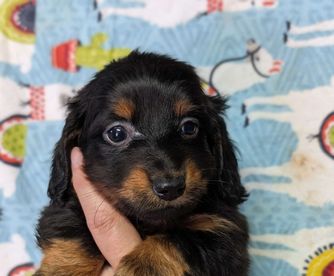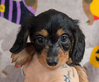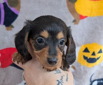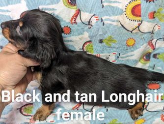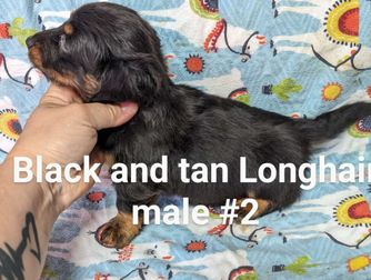 Todd is a beautiful black and tan Longhair male. He is very sweet and loves to play. He has great confirmation and an excellent example of what a dachshund should look like. He is a miniature.