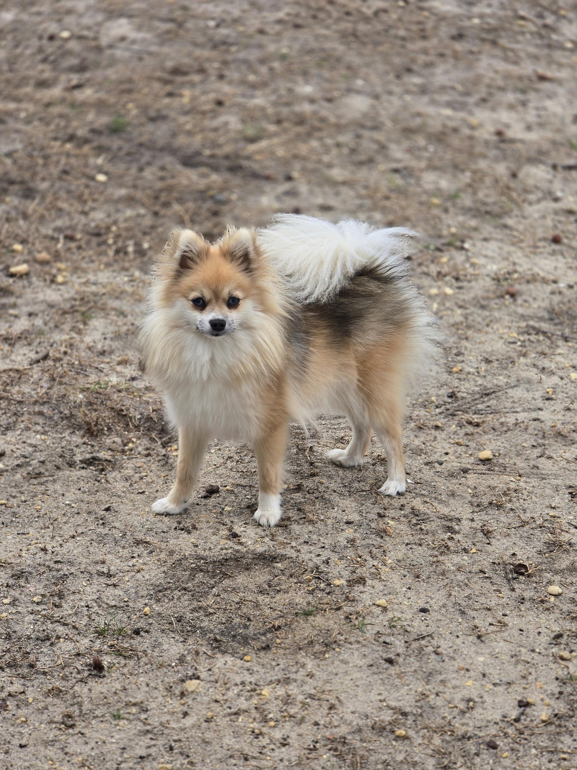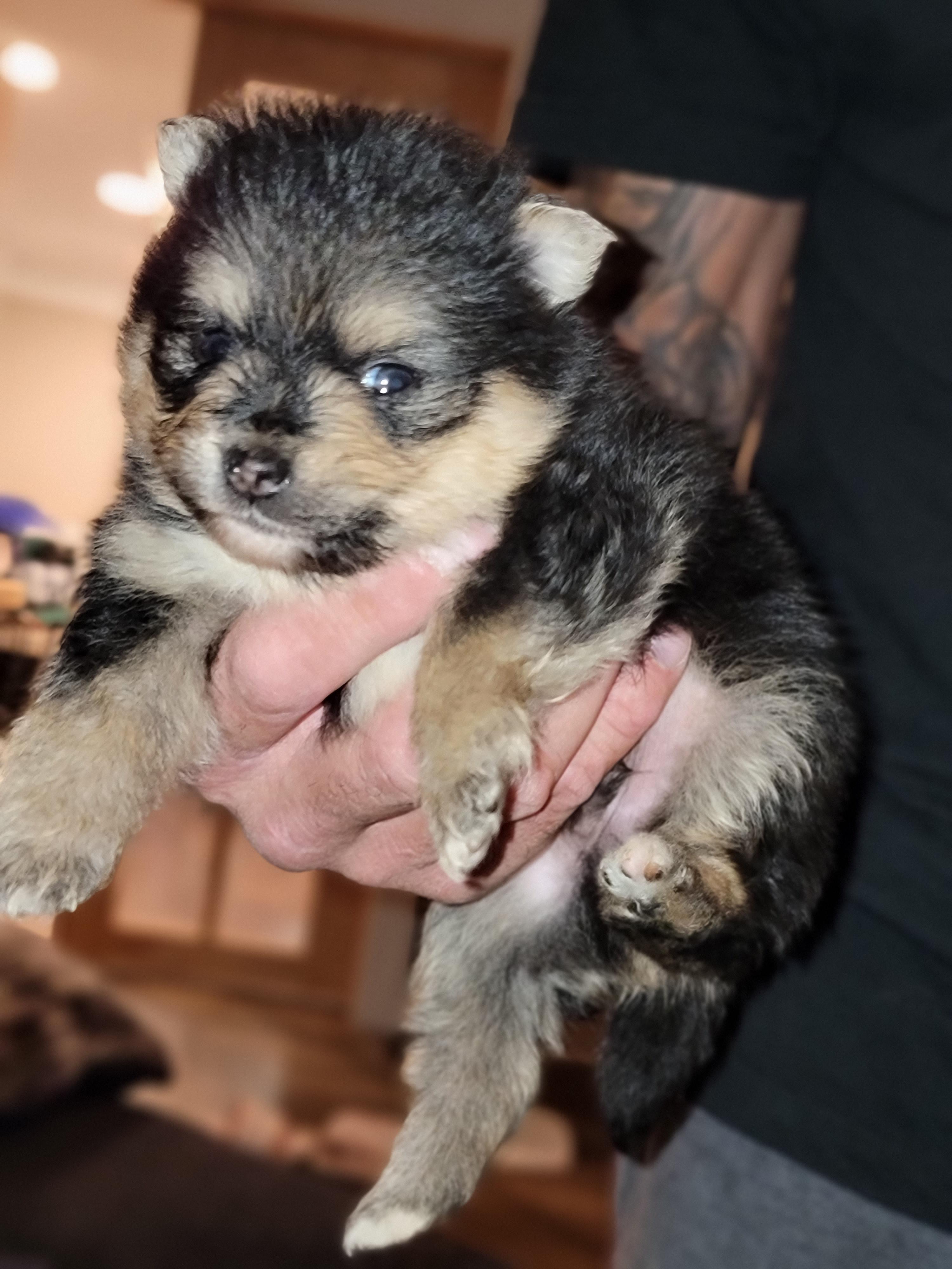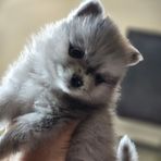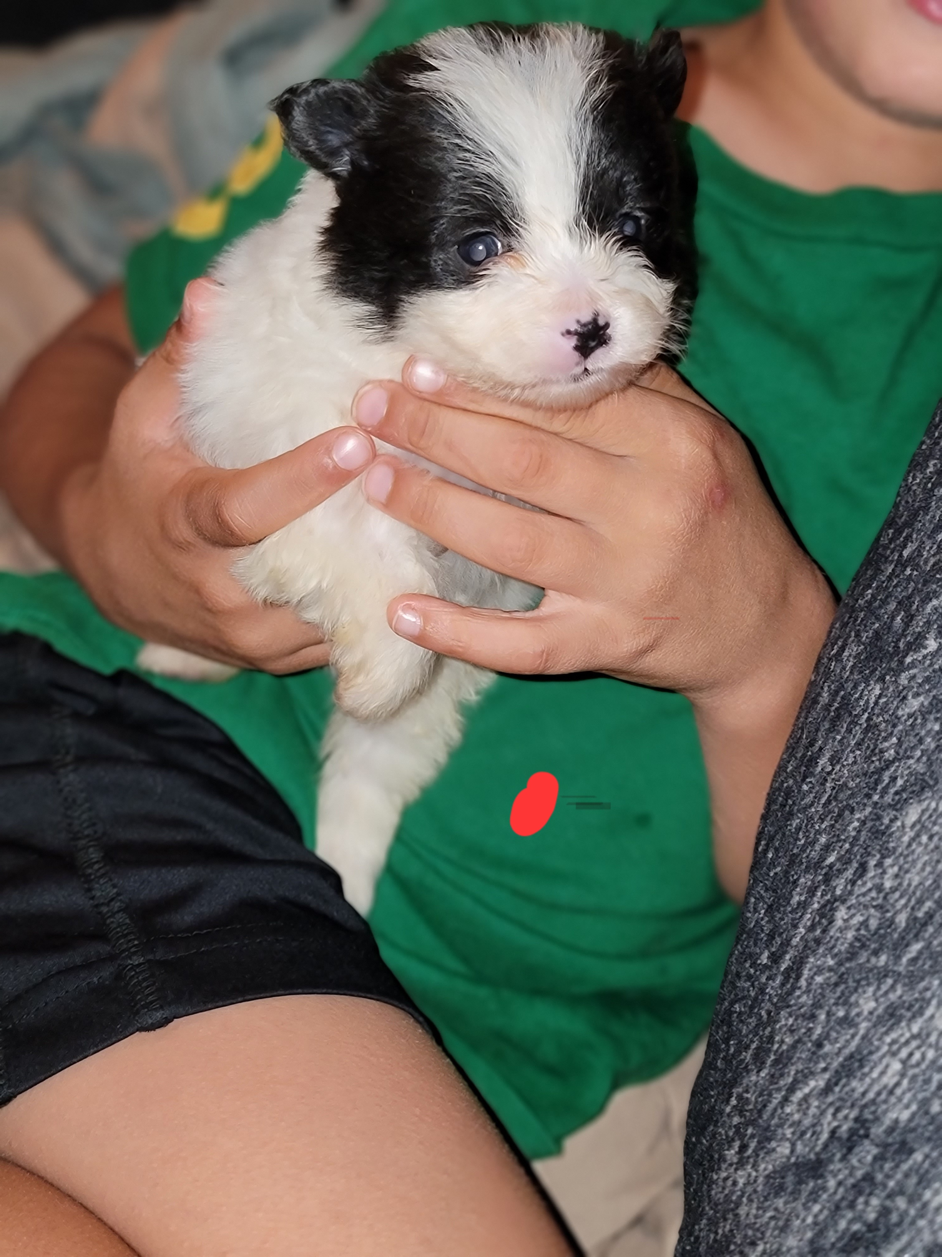 Blue pom with the cutest white toes and white chest, the biggest mush to ever exist. Blu is the most gentle dog to ever exist. He loves his family and shows it's with his snuggles as close as he can get in the nook of your neck!