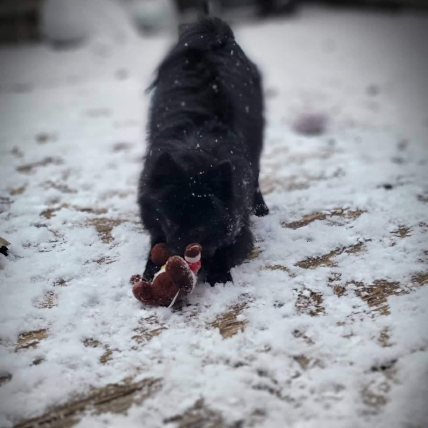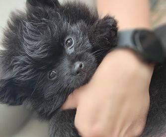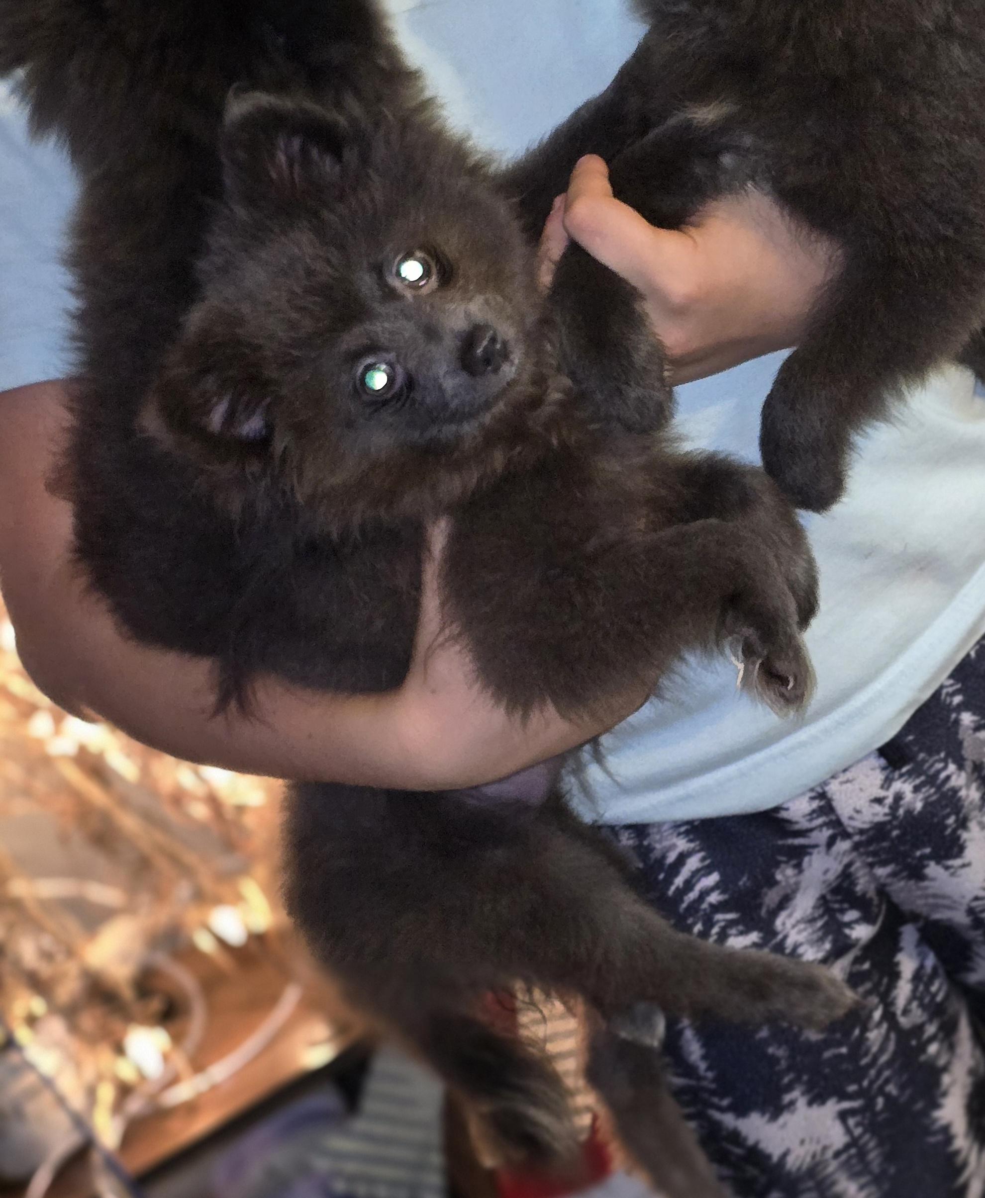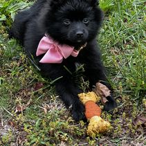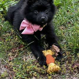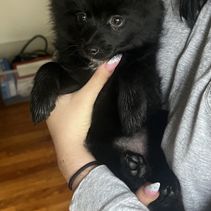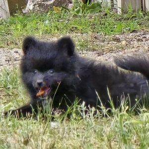 Anna is a sweetheart. All black with a little dash of white on her chin. She is the most mellow pomeranian I have ever had! She is a throwback pomeranian and is tall weighing about 12 lbs.