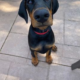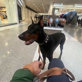 Breeder was very kind and answered all of my questions. It was very important for me to find an ethical breeder, which she is. The puppies and parents are health tested, which is very VERY important especially for this breed. You can search up her dogs registration numbers online to view their full health history and they all have good health history, as well as their litters and siblings and so on. This is a breeder that cares about the breed, and it shows. I got the PERFECT boy. She helped me choose a pup based off of my needs, and he is EXACTLY what I asked for. A cuddly, sweet boy who will do well when put to work. His ear crop is beautiful, and he is everything I wished for in my dream dog. He is also a VERY good looking, healthy dog. I will absolutely be buying from her again if I add another dobie to the family.