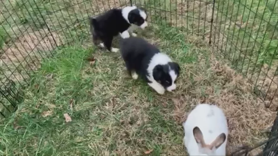 🐶🐰 The puppies met March the rabbit. Some were indifferent, some were a little too interested ☺️