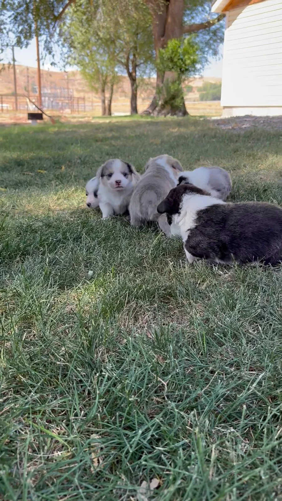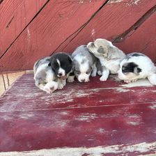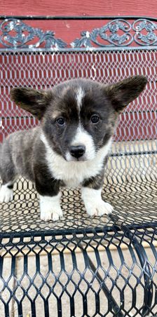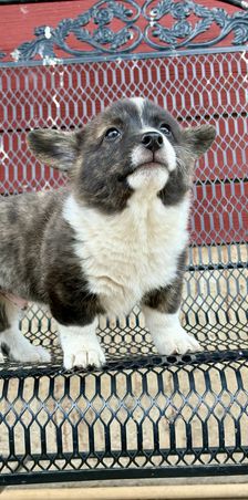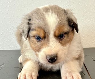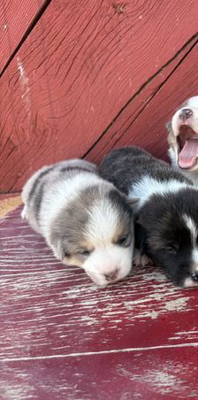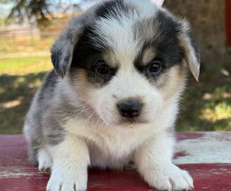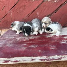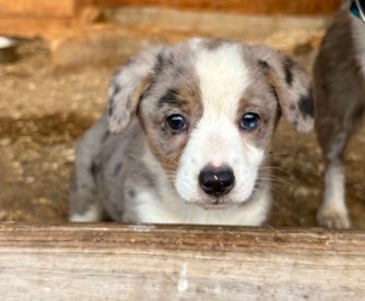 Our Australian Shepherd puppies include red merle, blue merle, and black tri-color. American Corgi puppies include sable, black and white, black and tan, sable and white, and blue merle and white. Colors will vary depending on the parent dogs.