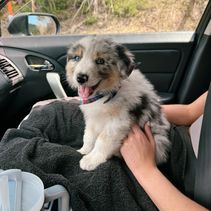 We lost our sweet fur baby Lily earlier this year to cancer. She collapsed in our back yard on a Tuesday—she had just chased a squirrel out of my garden, like she did every day! I rushed Lily to the vet—tumor on her heart. That Saturday, the tumor ruptured and Lily was gone. We were devastated. Lily was an amazing creature, an Australian Shepherd, that God blessed us with and were really missing our fur-girl. We decided to get a puppy. Not to replace our beautiful Lily, as it would be impossible to replace her, but to help ease the pain from our devastating loss. I saw a picture of our Hope (Hopie) on Gooddog.com and instantly fell in love with her. It was not hard to convince my family that she was the puppy we needed. So I contacted Jacalyn through gooddog.com. Jacalyn was amazing in answering my questions in a timely manner, and always positive in her answers. She sent pictures and video of Hopie so we could get to know our future fur-baby. Then she asked if we knew of anyone who may like to have Dottie (Hope’s sister). One of my grievances with getting Lily was that she never saw any of her eight siblings again. Well, that definitely set the wheels in motion. My daughter had been looking for a puppy, but she didn’t think her family was quite ready as she is pregnant with her second child. Training a puppy now would be difficult for working parents with two small children. But when my daughter saw Dottie, she fell in love with her. Jacalyn worked with us to get the dogs flown to us through a dog nanny service. The service worked well for our family! And we received our puppies just four days ago. The puppies are very well socialized. Jacalyn and her children (thank you to your children, Jacalyn, for their work in playing with our puppies. I know they must miss them very much. We truly appreciate all the time they vested in our fur babies). Hopie and Dottie have already learned to sit on command (day 1). They are working on “come” and “stay”. They already sleep 6+ hours at night (we let them dictate when it is time to get up). These are really delightful puppies. So different in their personalities, but play so well together—all due to great “parenting” from birth! Dottie will be heading to her forever home this week, but the cool thing is that she will be back at our house every Monday, Tuesday, and Thursday for puppy daycare (the days I get to have my granddaughter for the day)! The puppies are great with my granddaughter—gentle. These fur babies already understand puppy kisses only when around our granddaughter (they are only 11 weeks old), though they do get excited and forget around the rest of us! We have a long way to go in training, but already see the possibilities! Thanks again, Jacalyn! We are smitten for sure!