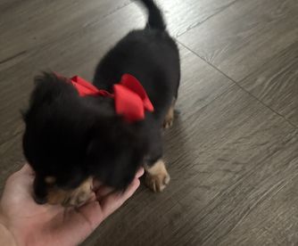 Emma was excellent to work with to get our little girl Vienna. She was very responsive with all of my questions and concerns and provided pictures and videos of our girl before we could bring her home. Vienna is now 1 year old and is a true mini weighing 6.5lbs. and has such a sweet and easy going personality. She loves every dog big and small and cats too!! We take her out whenever we can and she loves car rides, walks, being in a purse or stroller and has even traveled on an airplane already. We are delighted to have this precious baby and are blessed to have found Emma to give us our little girl.