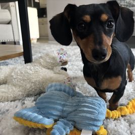 Coco is a female Dachshund. Carefully selected as a great representative of her breed, Emma decided to make her part of their program. Emma has passed Good Dog’s screening process, which involved a review of their breeding practices, environment, and the mental and physical health of their dogs.