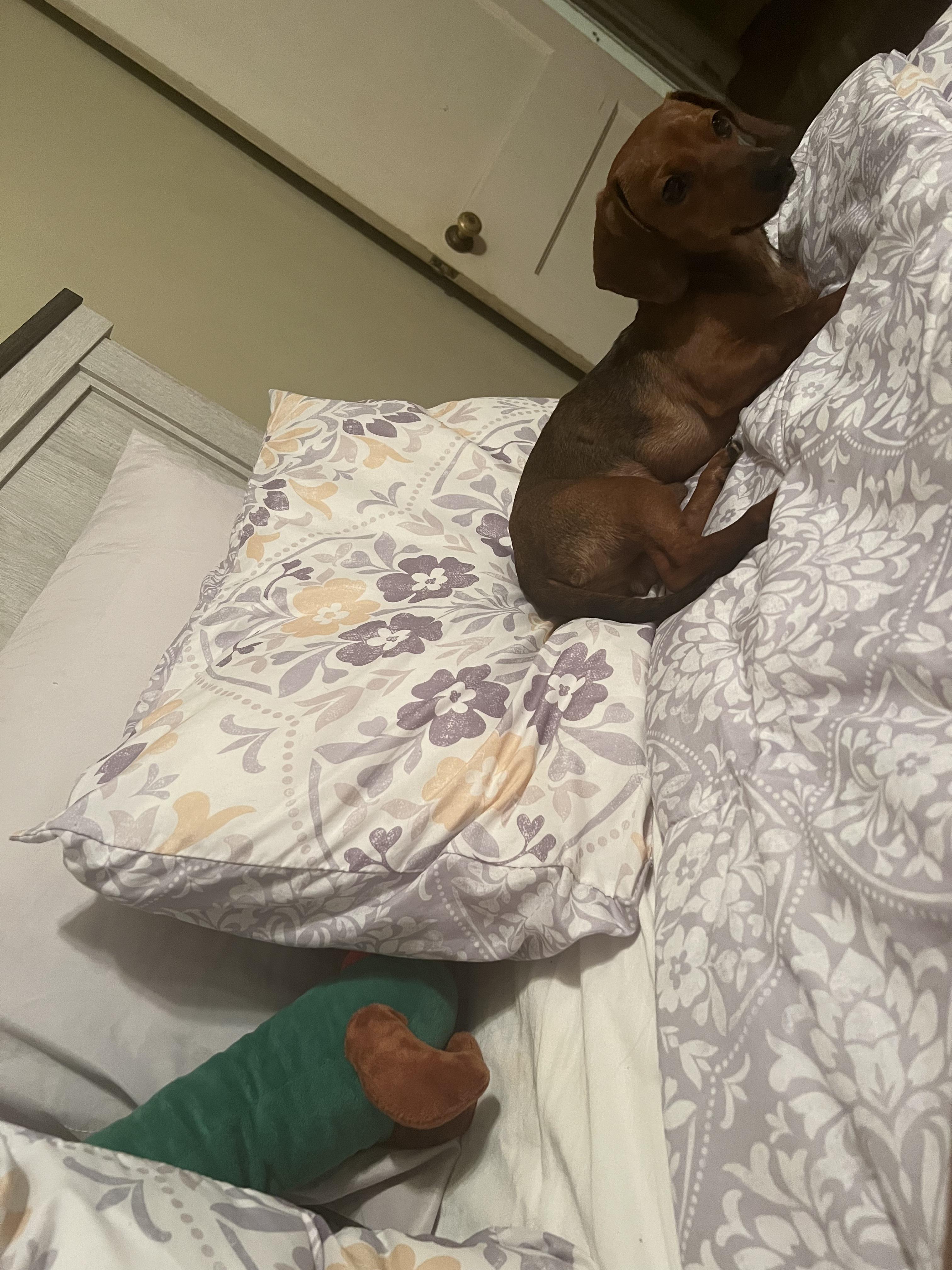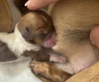 Tachi is a stunning Isabella and Fawn girl weighing 7.5 lbs pre-pregnancy, she carries only the fawn gene and has already produced a beautiful variety of puppies, including red and white piebald, brown and white piebald, black and tan, and chocolate and tan. With her soft coloring, sweet temperament, and wonderful mothering instincts, she’s a gentle, elegant little dachshund who brings both beauty and quality to every litter. Her eyes alone drew me to her she fills out house with the zoomies at all hours of the day. We love her.