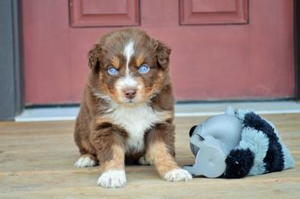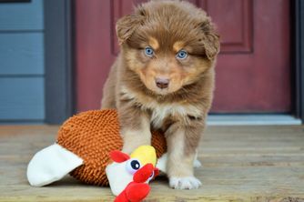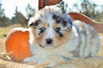 Our puppies include black, red merle, blue merle, and red. Colors will vary depending on the parent dogs.
