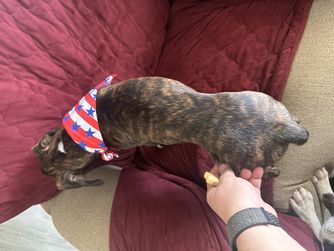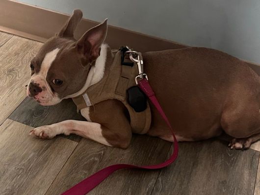 Greta is a female Boston Terrier. Carefully selected as a great representative of her breed, Karla decided to make her part of their program. Karla has passed Good Dog’s screening process, which involved a review of their breeding practices, environment, and the mental and physical health of their dogs.