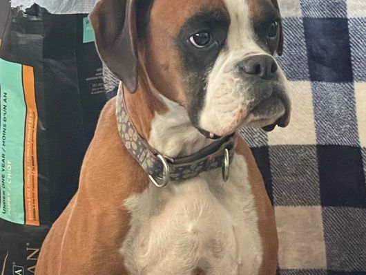 Stryker is a male Boxer. Carefully selected as a great representative of his breed, Karla decided to make him part of their program. Karla has passed Good Dog’s screening process, which involved a review of their breeding practices, environment, and the mental and physical health of their dogs.