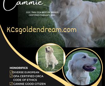 I'm Ivy & David A., the breeder behind KCs Golden Dream located in Pleasant Hill, MO. My focus is on excellence in every aspect of my breeding program. I offer top-quality Golden Retrievers for therapy, performance and pet homes. I am dedicated to preserving, and maintaining the standards of this magnificent breed. I serve as Vice President of the Kansas City Golden Retriever Club. see our website for upcoming litters and stud availability.