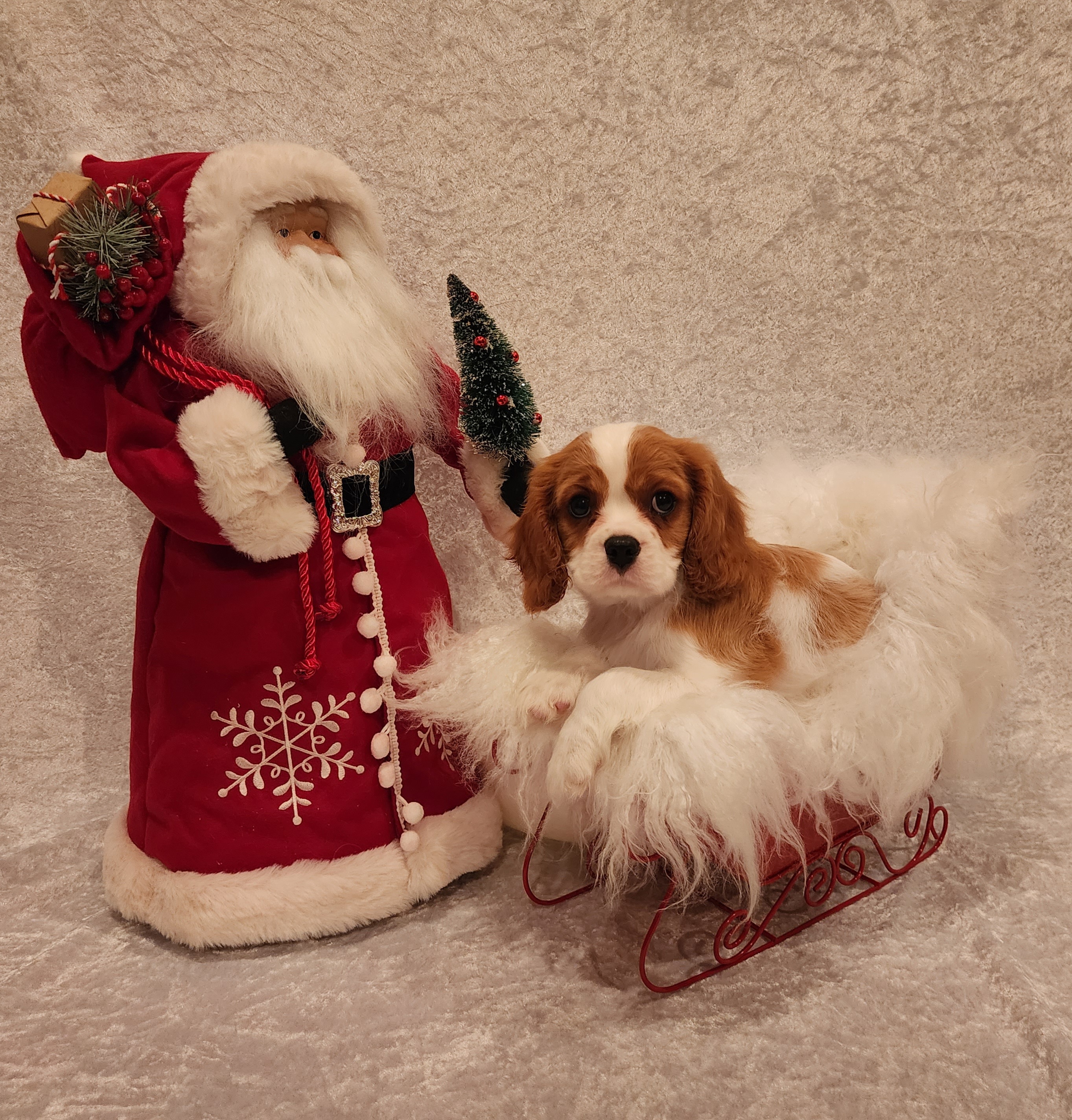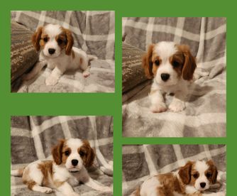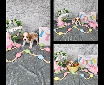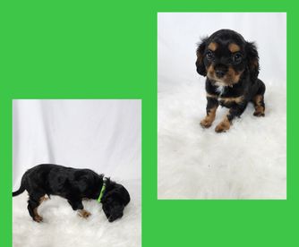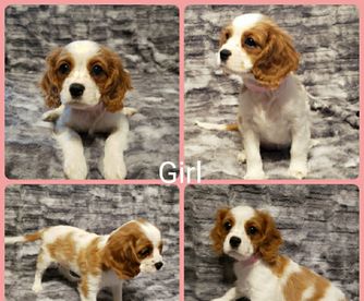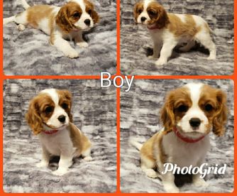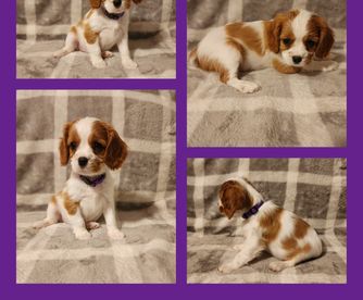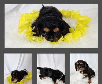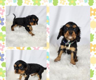 Our puppies include blenheim, black and tan, and tri-color. Colors will vary depending on the parent dogs.