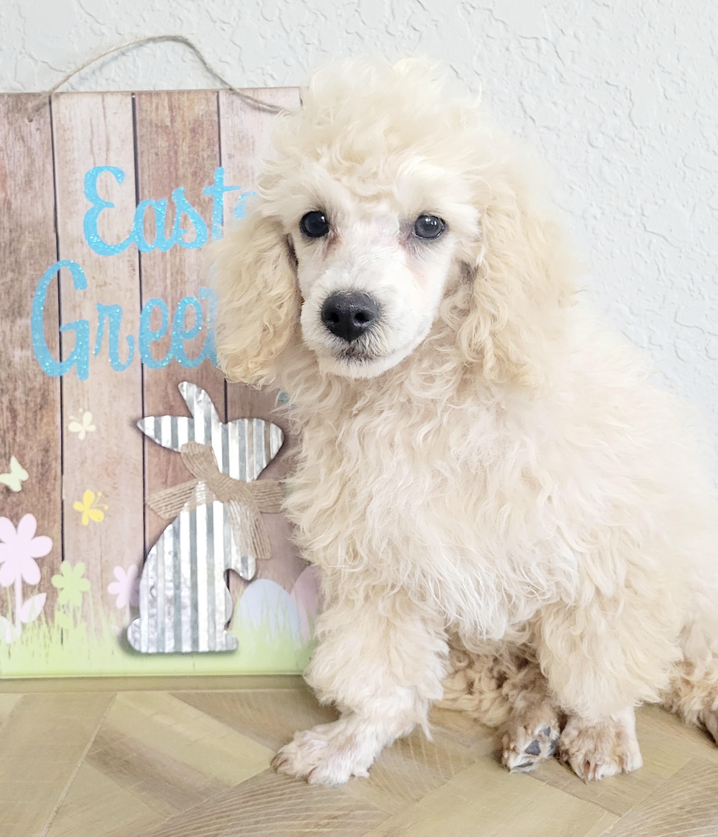 Poodle puppies are miniature size. Sizes will vary depending on the parent dogs.
