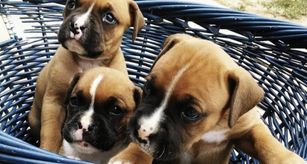 Our Companion Cross puppies include brindle and black and white. Boxer puppies include fawn and brindle. Colors will vary depending on the parent dogs.