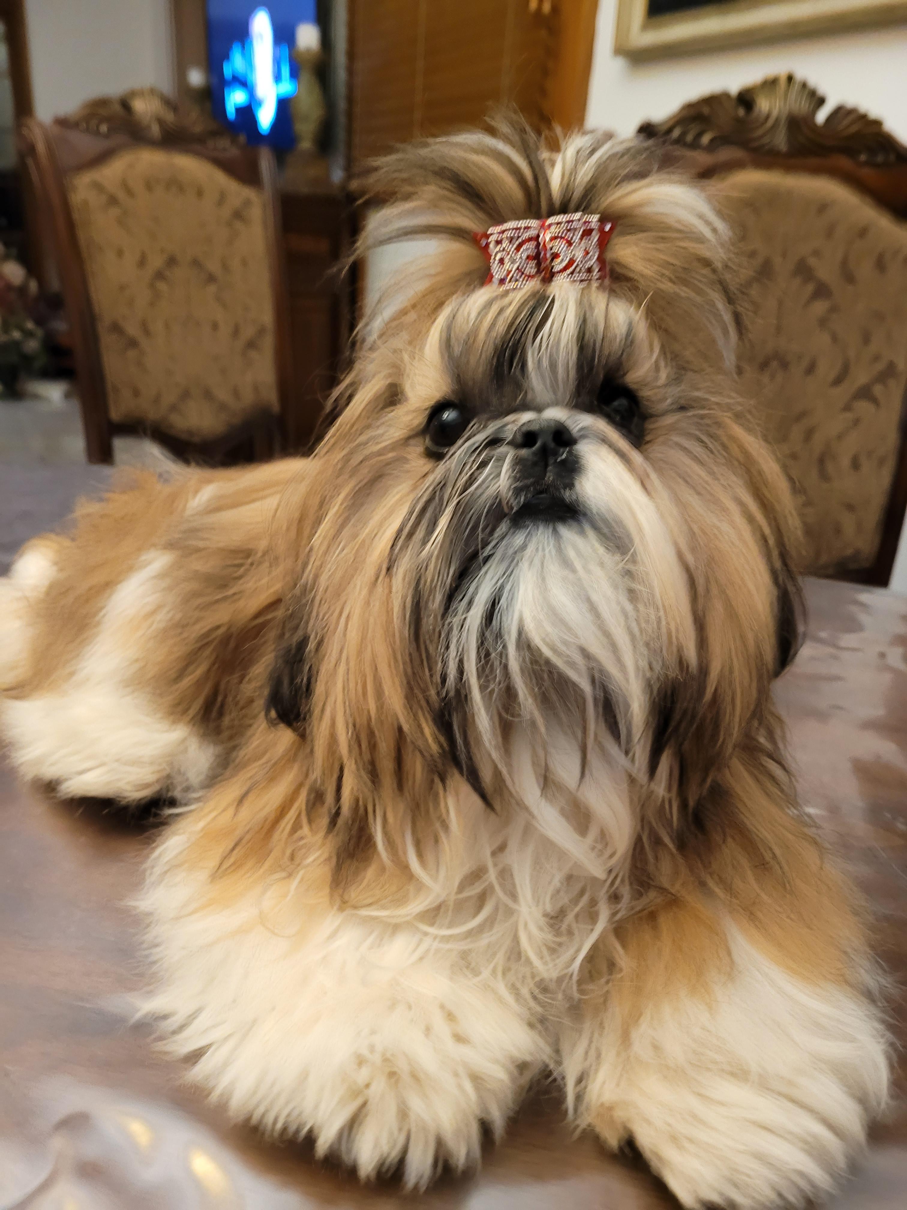 Lil bit is a female Shih Tzu. Carefully selected as a great representative of her breed, Sherry decided to make her part of their program. Sherry has passed Good Dog’s screening process, which involved a review of their breeding practices, environment, and the mental and physical health of their dogs.
