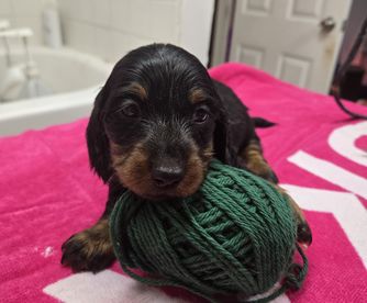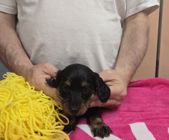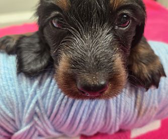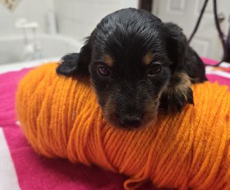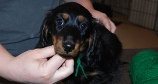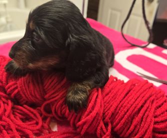 Dachshund puppies have longhaired coats. Coat types may vary depending on the parent dogs.