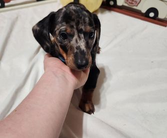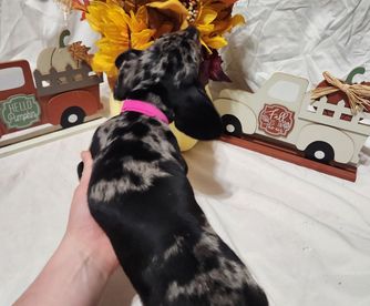 Our puppies are dapple. Colors will vary depending on the parent dogs.