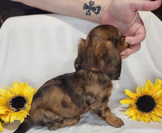 I'm KELLI H., the breeder behind Kelli's Dachshunds located in Cameron, TX. We raise all our dogs in the house with the family. All puppies are around cats, chickens, cows, and lambs.