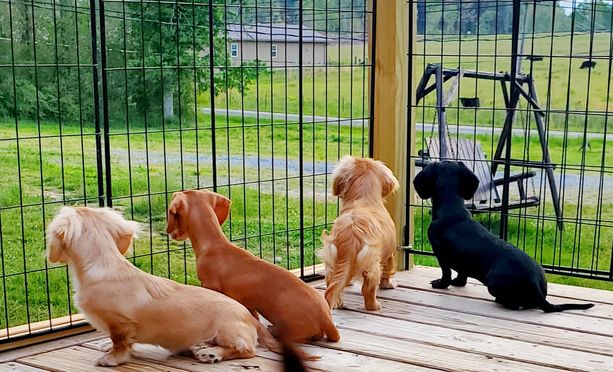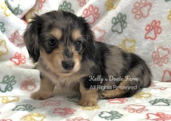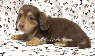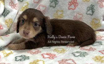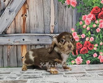 I'm Kelly B., the breeder behind Kelly's Doxie Farm located in Cleveland, TN. We are a small breeder of Miniature Dachshunds. Our puppies are raised in our home and are use to being around young children. We have been breeding for nineteen years. All of our dogs are CKC registered {The Continental Kennel Club in Walker, Louisiana} and some of them are AKC registered. We have all three coat types smooth, long and wire hair and long soft wire coat (also known as silkys ). The patterns we have are brindle, dapple, piebald and dapple piebald.