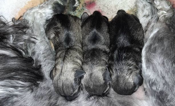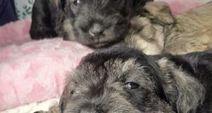Our puppies include black and silver and salt and pepper. Colors will vary depending on the parent dogs.