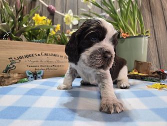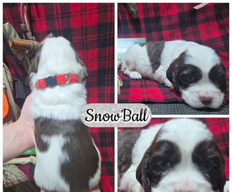 Our puppies include white and liver, white and black, liver white and tan, liver and white, black white and tan, lemon and white, and black and white. Colors will vary depending on the parent dogs.