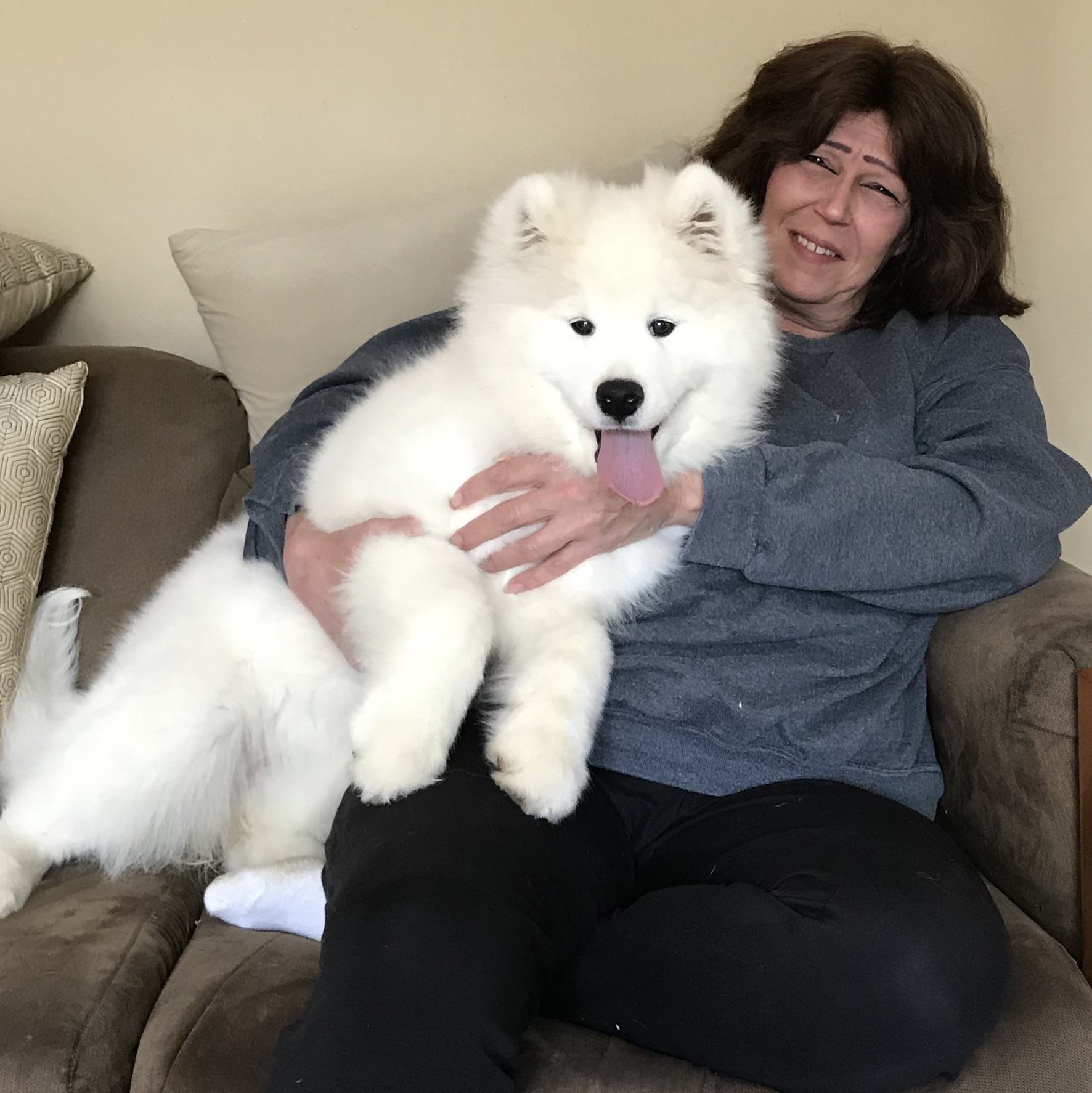 Uno is a female Samoyed. Carefully selected as a great representative of her breed, Kelli decided to make her part of their program. Kelli has passed Good Dog’s screening process, which involved a review of their breeding practices, environment, and the mental and physical health of their dogs.