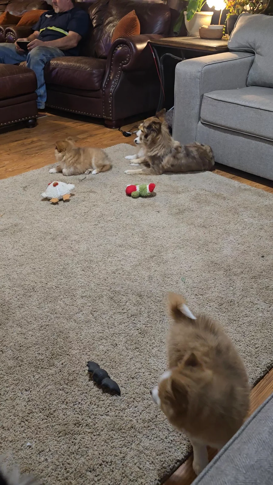 They are doing great with puppy pads, had a clean bill of health from the vet, again. And really enjoying their toys.