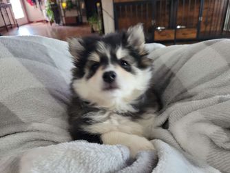 I went through Kenna when I got my first pomsky, and if she lived closer, she is who I would have went through for my second. When I got Eureka (Yuri) she provided me with her shot record, a framed picture of her parents, a little blanket with their home scent on it, and the sweetest and most beautiful posky ever! In acquiring my second pomsky, I learned that not all breeders are as wonderful to work with. Kenna has been a wealth of knowledge when I have questions. She loves her pups and their offspring very much. My pup came mostly potty trained and had experience around large dogs and cats. Working with Kenna was worth the 309 mile drive.