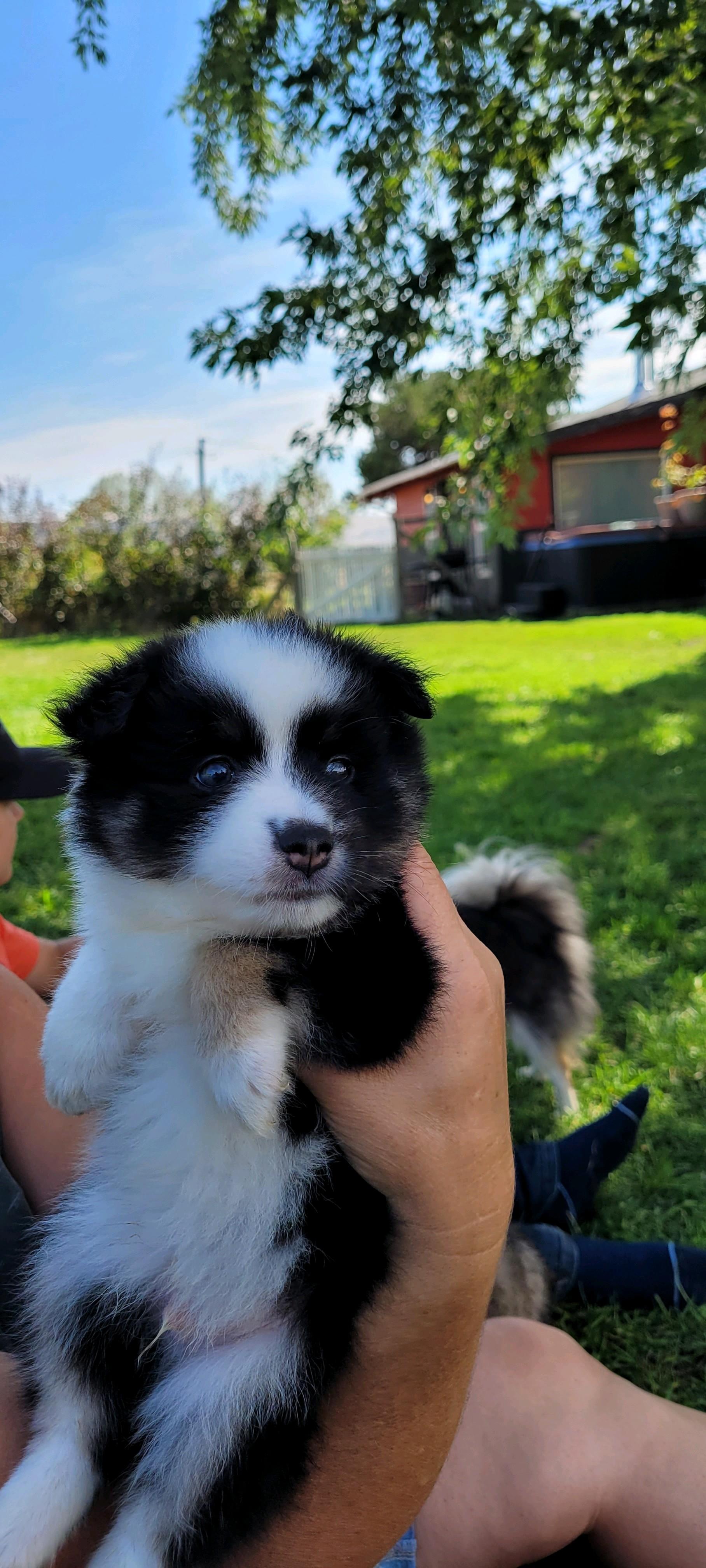 Our puppies include silver and white, tri-color, gray and white, black and white, and merle. Colors will vary depending on the parent dogs.