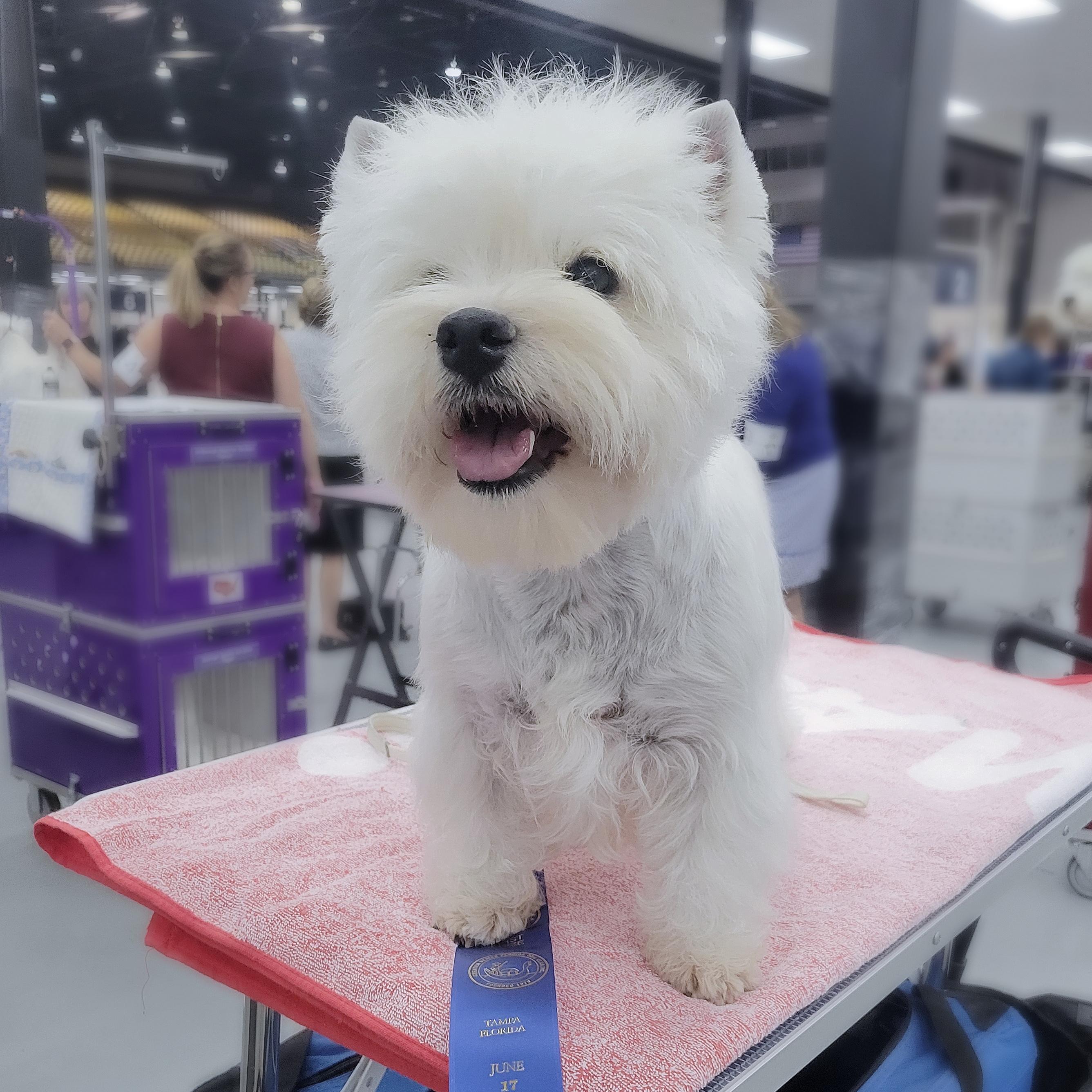 TESLA is a female West Highland White Terrier. Carefully selected as a great representative of her breed, Yulia decided to make her part of their program. Yulia has passed Good Dog’s screening process, which involved a review of their breeding practices, environment, and the mental and physical health of their dogs.