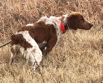 "Rocky" is the son of NAFC/GFC/GAFC Spanish Corral’s Sonny Patch & Janee’s Dirty Dancer. Rocky is easy going, intelligent, loves birds and loves attention. At 9 months old Rocky was pointing and retrieving wild quail and pheasant. He has learned a lot from the birds. He has a loving personality and great disposition. Rocky has proven to be a strong competitor and earned all his juvenile points towards his AKC FC title before his first birthday. He completed his AKC Field Champion title by the age of 3. In March 2020 he won the 1 hour Victoire Nationale Derby Championship earning him an American Field Championship title at the age of 2! In 2022 Rocky accomplished what no other Brittany in the history of nationals has done. He won NFC and NAGDC in the same year. We are looking forward to a long hunting and field trial career with him.